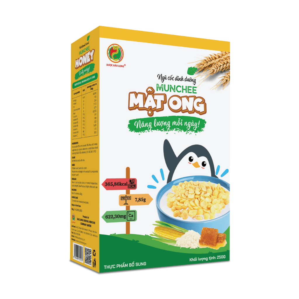 - Ngũ cốc dinh dưỡng Munchee có nhiều hương vị: Yến mạch, Bắp ngọt, Mật ong, Socola, Cà rốt tha hồ chọn lựa, không lo bị ngán.